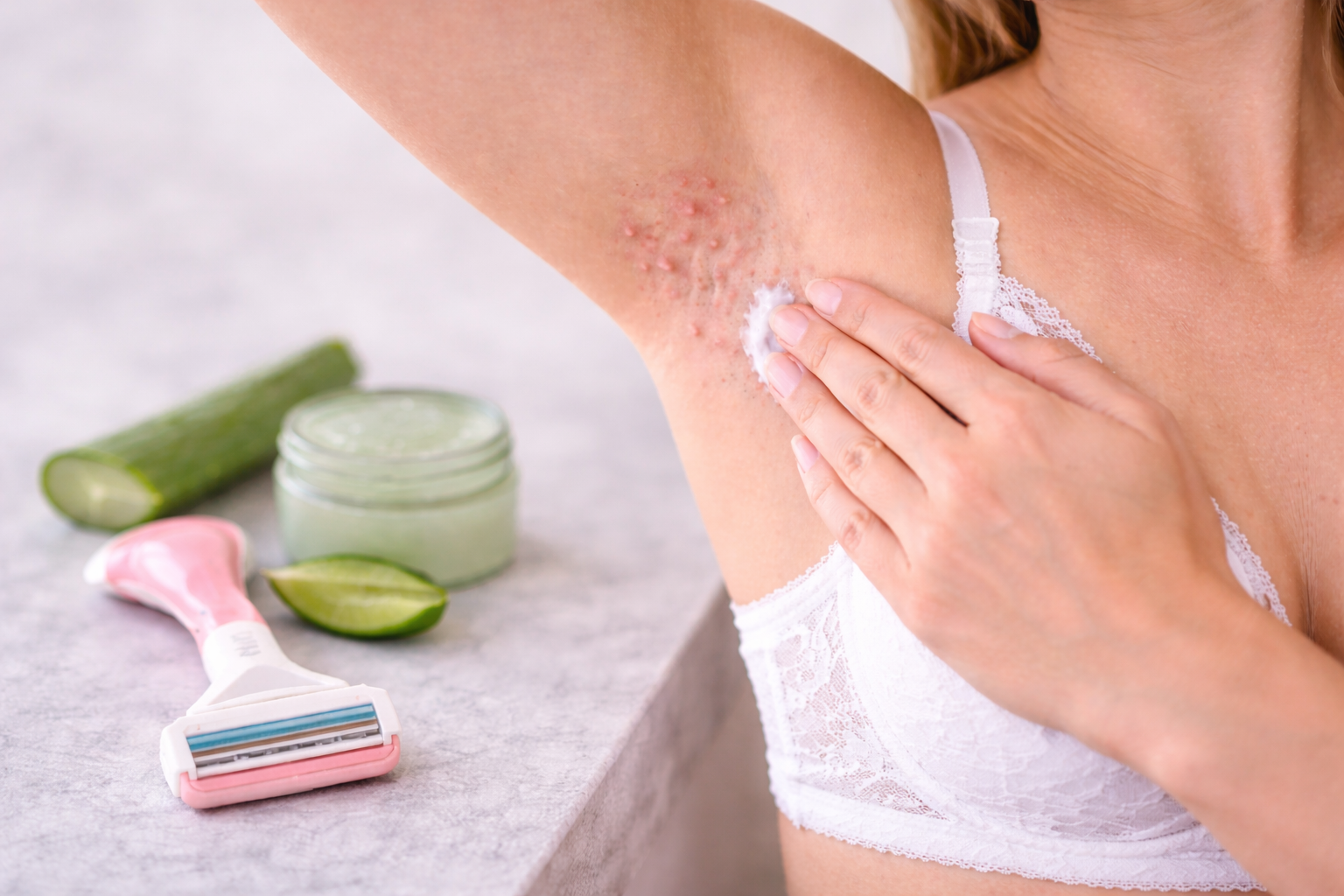 Beruhigende Pflege hilft, Rasierpickel unter der Achsel schneller abklingen zu lassen.
